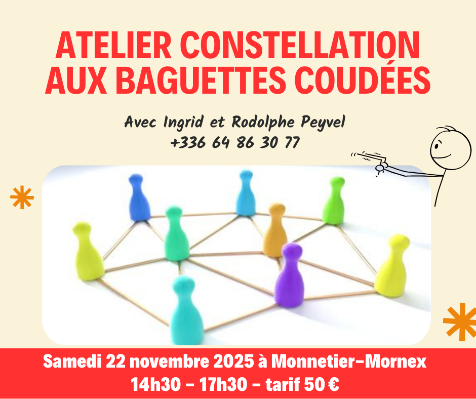 “La constellation à l’aide des baguettes coudées” est une méthode unique qui vous permet d’explorer vos schémas familiaux et de prendre conscience des dynamiques cachées au sein de votre lignée. Grâce aux placements et aux symboles, nous créerons ensemble un espace sûr où vous pourrez voir et ressentir les liens qui vous unissent à votre famille. Ce processus offre une perspective nouvelle sur vos expériences de vie, vous aidant à identifier et à dépasser les obstacles qui vous freinent.